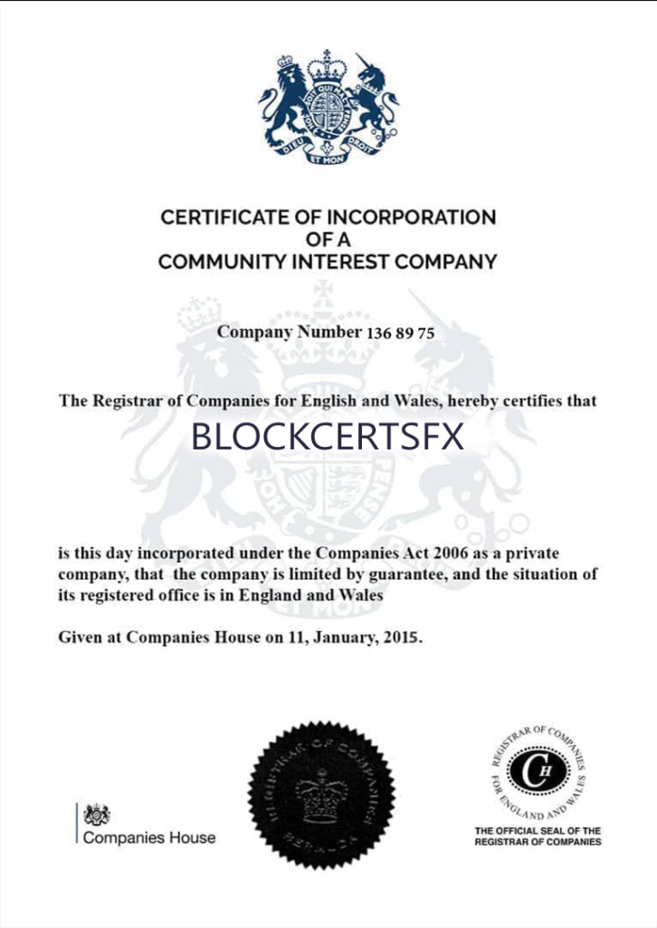 Please note that the only source of legitimate and up-to-date incorporation information about Blockcertefx LTD can be found on our website . This applies to registration number , legal information contained on the UK Registrar’s website in relation to Blockcertefx LTD, as well as any additional information and any related data.